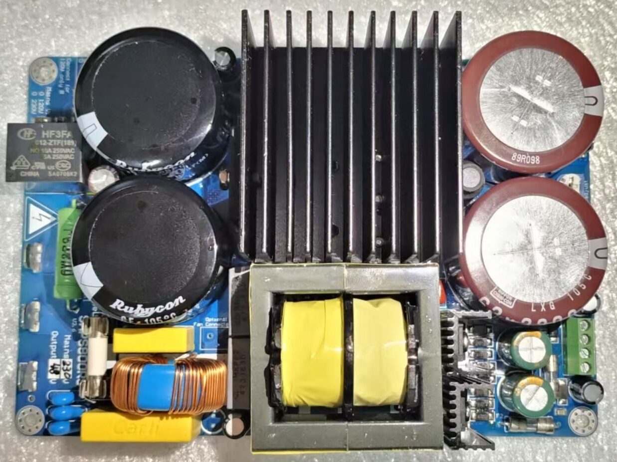 Half Bridge resonant SMPS with SINGLE rail output voltage and two independent auxiliary isolated outputs. It is capable to deliver 800W with a crest factor of 2.5 or higher and up to 920W peak power. The stock available output voltages are 36V, 48V, 60V and 72V. It uses zero-voltage switching half bridge resonant topology. The main advantage is lower size and cost compared with a similar regulated SMPS and better efficiency, up to 95% compared with the regulated SMPS’s due to the fact that the transistors are soft-switched, and the current through the switches has sinusoidal shape, and there are no output inductors.